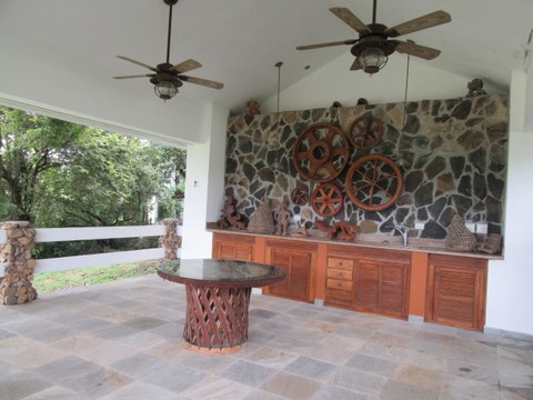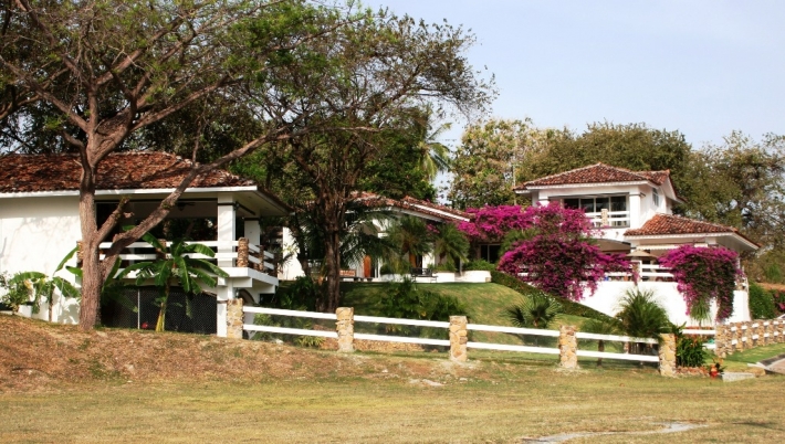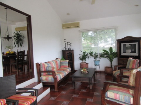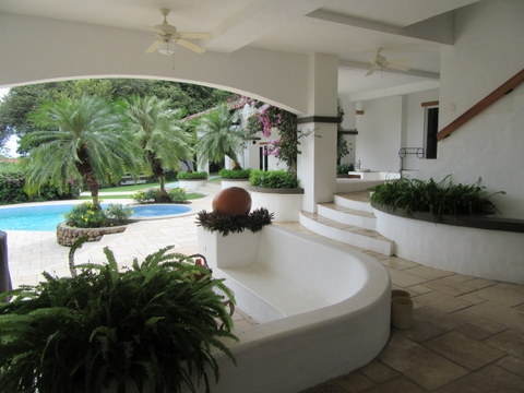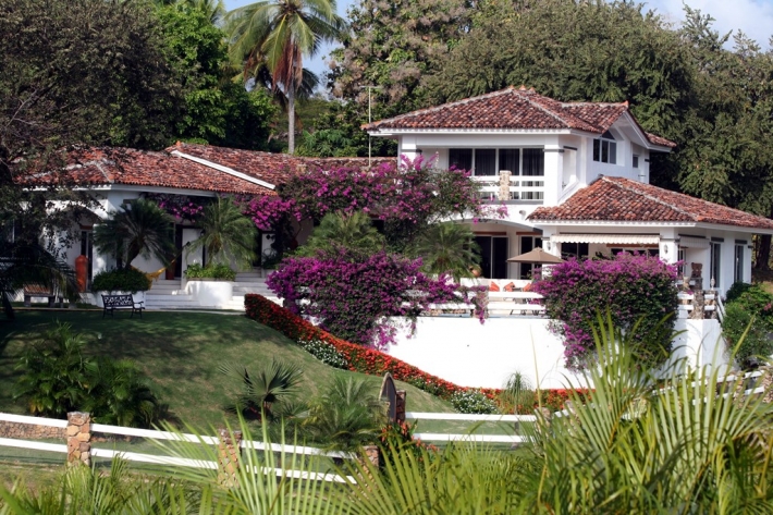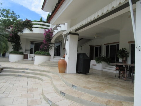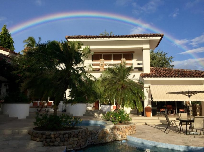 La casa principal consta de 5 recamaras, cada uno con su baño completo. El dormitorio principal se encuentra en el segundo piso. Es de buen tamaño y también tiene su baño grande y un balcón con vistas al océano. En la planta baja tiene la sala, comedor, cocina, área de lavandería y los otros 4 recamaras y su propio cuarto de baño. Hay una gran terraza cubierta que se conecta a la piscina, así como un medio baño de huéspedes. En toda la casa usted encontrará acabados detallados que incluyen gabinetes de madera, azulejos importados, y hermoso jardín.