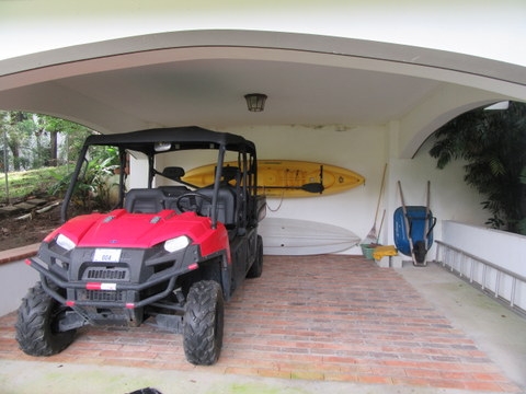 Hay estacionamiento para dos autos en frente de la casa, también hay un deposito en frente del garaje. Cuenta con agua de la ciudad, hay 2 tanques de reserva de agua de 500 galones cada uno, un nuevo sistema de filtración de agua, un nuevo calentador de agua caliente, y un tanque séptico (que está oculto bajo un juego de “shuffle board”). También incluye un generador de 20.000 kwts que se activa automáticamente si la electricidad se apaga.