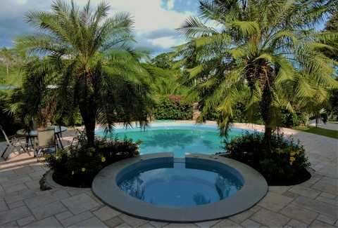 El jardín están hermosamente rodeada con bellas bougainvillea. También cruzando la calle hay un pequeño lago donde se puede disfrutar viendo patos, garzas, rey pescador y otras aves tropicales y migratorias.