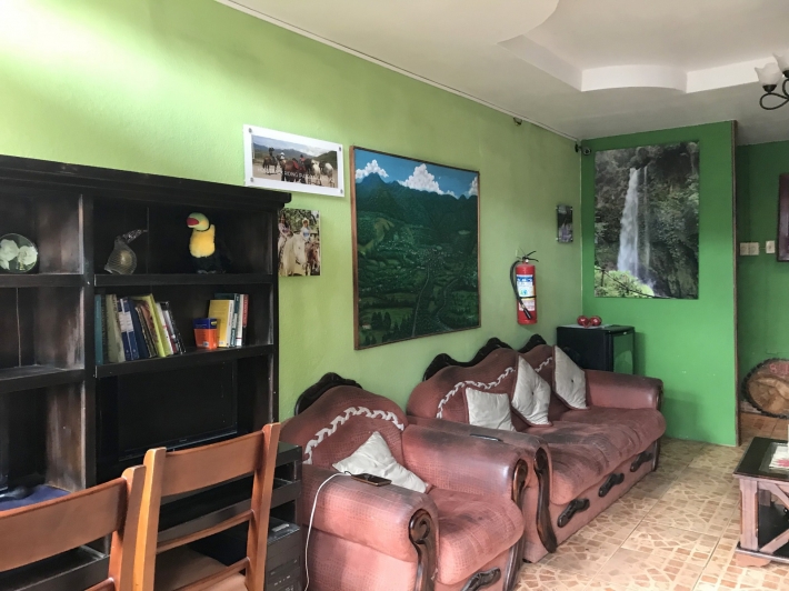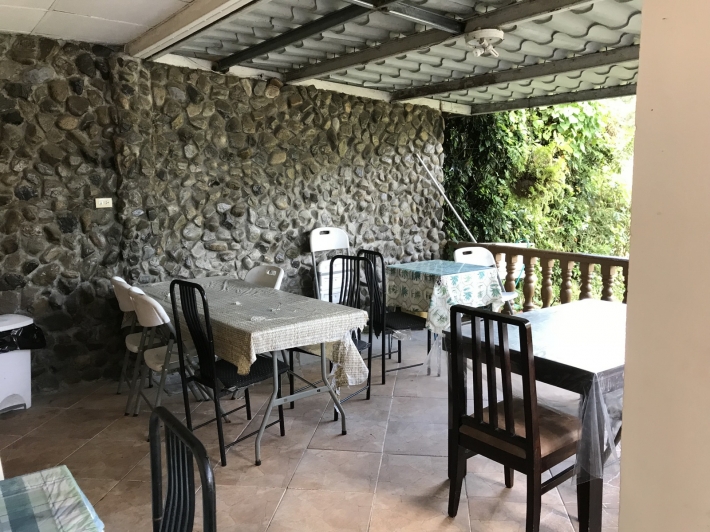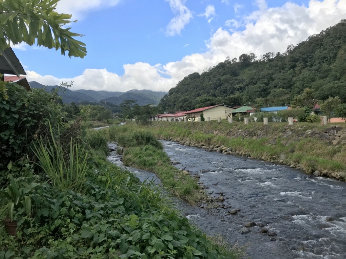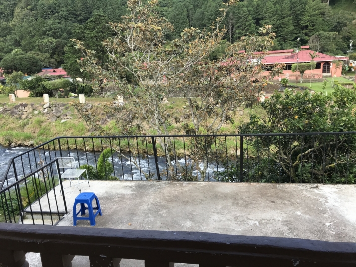 El comedor y el salón abierto dan al río y ofrecen la mejor vista del centro de Boquete.