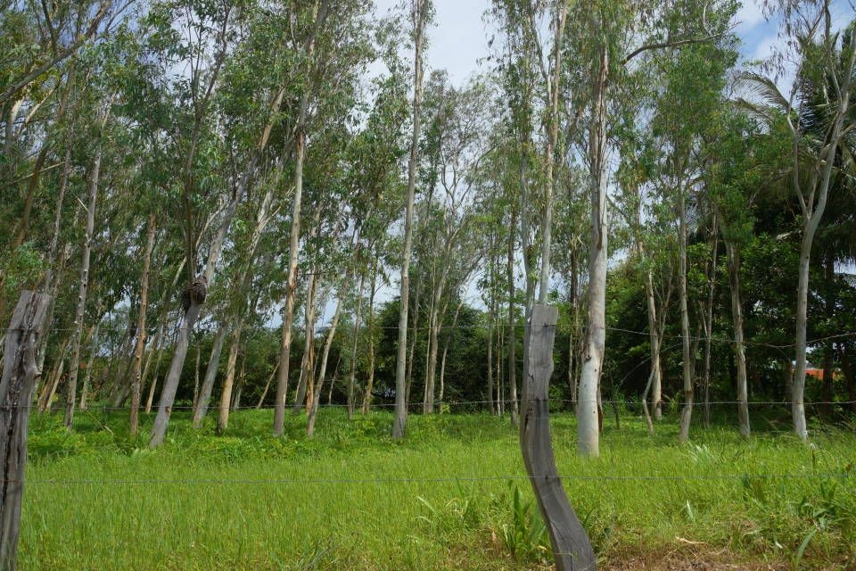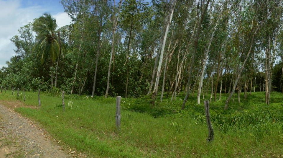 El terreno es plano con árboles para dar sombra y privacidad, y tiene frente de calle y acceso a electricidad pública. Barrio tranquilo, muy seguro y cercano a los servicios.