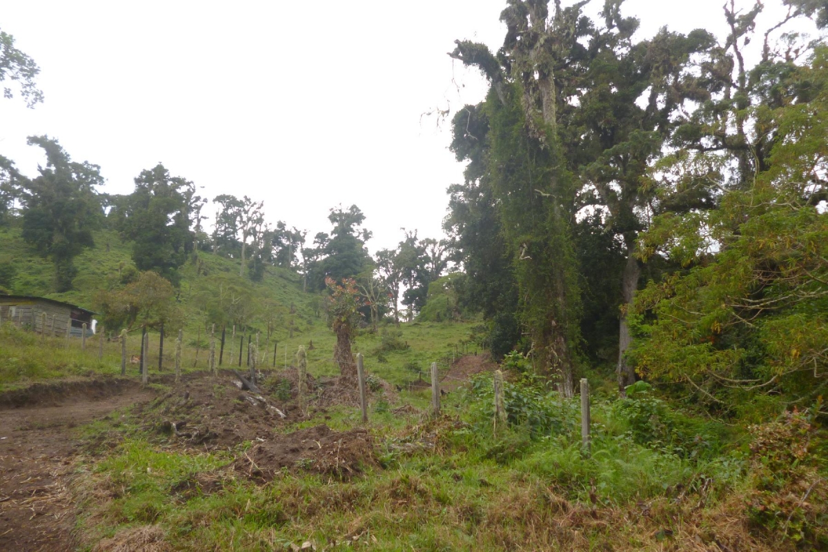 33 hectáreas (81 acres) de tierra titulada más 25 hectáreas (61 acres) de Derecho de Posesión ubicadas justo al lado del Parque Nacional Volcán Barú. Apoya el Parque Nacional y tiene un terreno vallado que se encuentra en el parque nacional. Esta parte de la tierra no se puede construir, pero puedes poner senderos en ella. Entonces, en realidad son 72 ha pero solo se pueden usar 58. La granja con una elevación de 1,979 a 2,000 (6,492 a 6,561 pies) metros sobre el nivel del mar tiene un clima fresco durante todo el año.