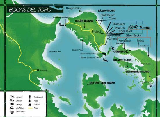 - Бокас-дель-Торо предлагает множество хороших ресторанов, гостиницы, банка, аэропорт, интернет-кафе, супермаркетов, баров, прокат лодок, экскурсионное обслуживание, магазины товаров для подводного плавания, лодка &амп; прокат мопед, и много туристической деятельности.